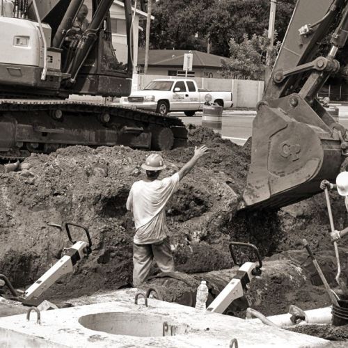 gutter, sidewalk construction, traffic signals, lighting,